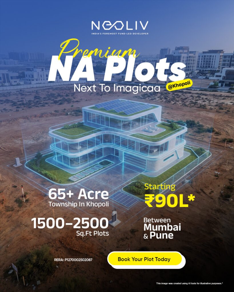 Welcome to NeoLiv Khopoli Plots, an exclusive 65+ acre premium township nestled amidst the scenic hills of Khopoli, right next to Imagicaa. Designed for those who seek refined living and long-term growth, this low-density development features nearly 500 premium plots and villas ranging from 1,500 to 2,500 sq.ft.
